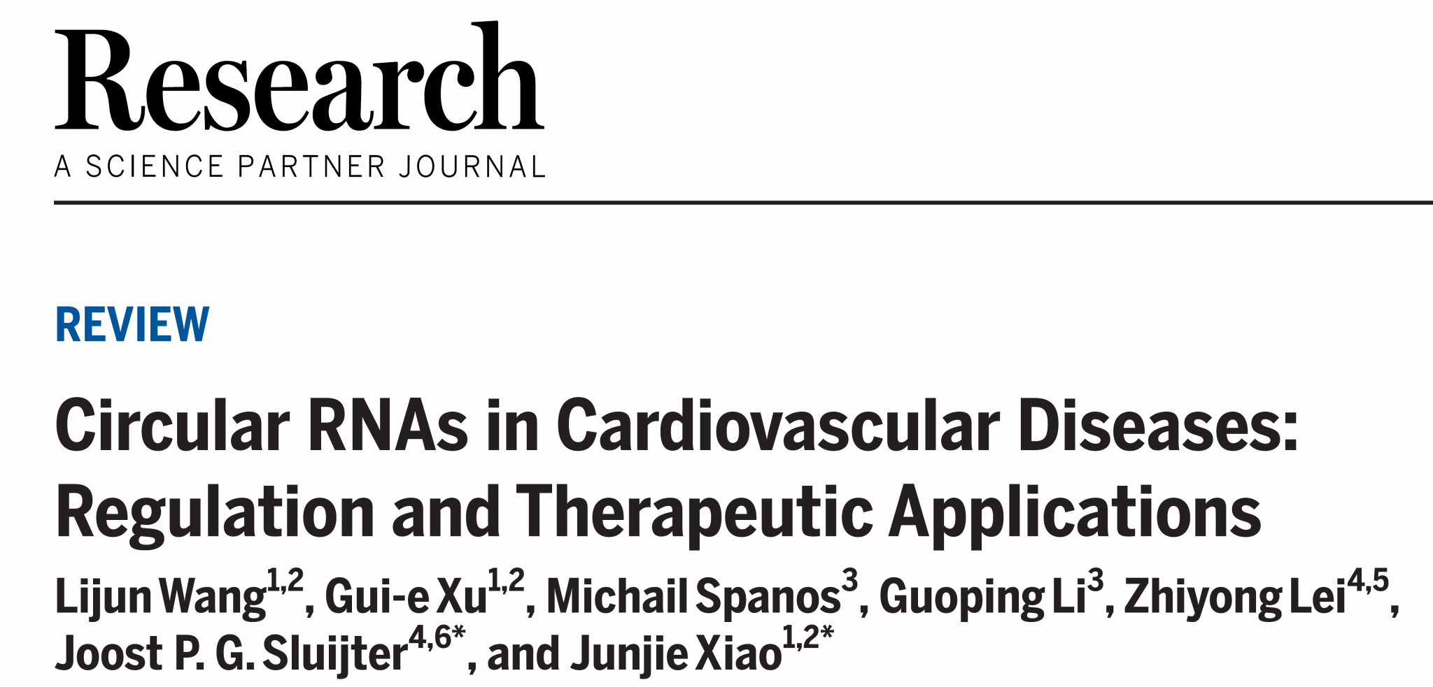 近日,国产亚洲精品美女久久久心血管研究所王丽君副教授发表环状RNA在心血管疾病中研究进展和治疗应用的综述论文。论文以“Circular RNAs in Cardiovascular Diseases:Regulation and Therapeutic Applications”为题发表在国际著名综合性期刊Research(https://doi.org/10.34133/research.0038)上(中科院期刊分区大类综合1区TOP期刊,杂志影响因子:11.036)。国产亚洲精品美女久久久肖俊杰教授和荷兰乌特勒兹大学Joost P. G.Sluijter教授为共同通讯作者,国产亚洲精品美女久久久为论文的第一完成单位。