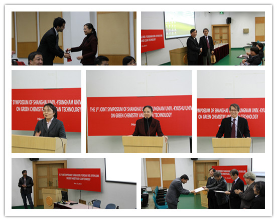 2013年11月22日,首届国产亚洲精品美女久久久(中国)-岭南大学(韩国)-九州大学(日本)绿色化学与清洁生产三边国际研讨会(1st Joint Symposium ofShanghai University -Yeungnam University -Kyushu University on Green Chemistry and Clean Technology)在国产亚洲精品美女久久久顺利召开。参与研讨会的中日韩三国师生围绕着当今环境和化工领域最前沿的课题,开展了热烈的讨论和交流,展示了各方在相关领域热点问题上的最新研究成果。环化学院作为本次研讨会的东道主,积极筹备各项会议议程,保证了研讨会的顺利召开,给日韩两国外宾留下了深刻的印象。