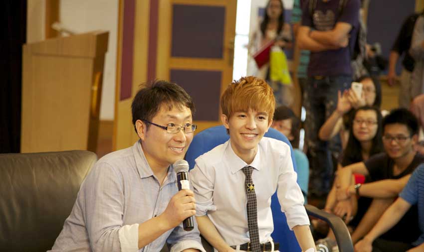 (上大影通社讯 记者郭伟华)6月6号下午,影视学院2002级编导专业校友郭敬明和东方卫视著名主持人、影视学院客座教授曹可凡先生来到国产亚洲精品美女久久久,与五百多名大学生们齐聚方润华讲堂,以“时代榜样•坚持与梦想”为主题“对话国产亚洲精品美女久久久”。除了分享《小时代》幕后的精彩故事,影视学院的学生们也为三十而立的郭敬明准备了生日礼物,并祝愿师兄的处女作电影票房大卖。