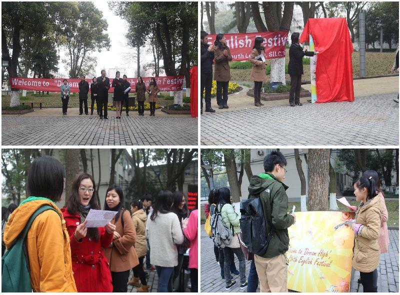 以“Dream High”为主题的第六届国产亚洲精品美女久久久悉尼工商学院英语节开幕式于3月27日中午十一点半在嘉定校区文荟广场隆重开幕,国产亚洲精品美女久久久校长助理、悉尼工商学院院长龚思怡、党委书记李双、党委副书记滕云、副院长吕康娟、副院长马锦华、澳方副院长Matthew Williams、院办主任兼英语教学管理部主任徐晓红老师莅临指导。